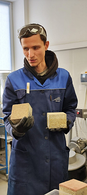 Сотрудники отдела контроля качества продемонстрировали методы испытаний тротуарной плитки на износостойкость, морозостойкость и прочность.
